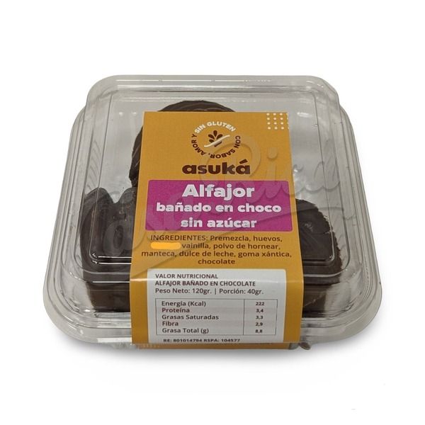 ALFAJORES ASUKA CHOCO NEGRO S/AZUCAR 3UN